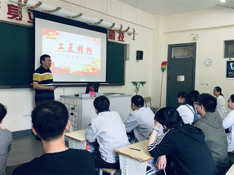 随后,名班主任陈恩东面对教师开设了《打破内在,活出人生精彩》的主题讲座、面对师生开设了一堂题为《学工匠练技能圆中国梦》的主题班会。在讲座中,陈老师就如何遵循“摒弃倦怠,擦亮眼睛,发现美的事物;拥抱成长,创造美好班级”的管理理念,分享了班级管理的成功经验和心得。在主题班会中,陈老师通过播放视频《致匠心》,让学生理解“工匠精神”, 并结合日常的专业课,希望学生用“工匠心”对待学习,传承“工匠精神”,踏实做“工匠人”。