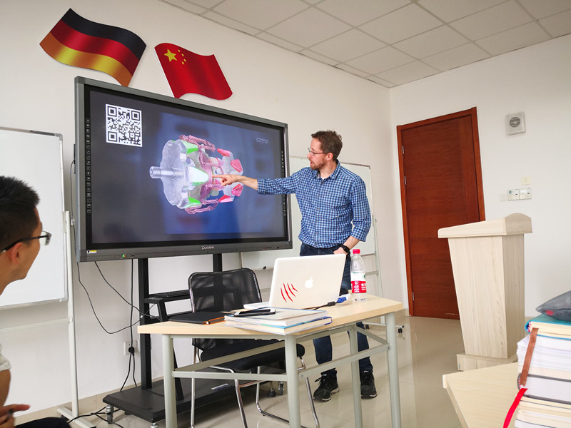 两个星期的时间,Kirchner先生重点复习了轮胎养护、充电系统故障诊断、冷却系统故障诊断还有润滑系统故障诊断等课题,他用在德国授课中运用的现代化汽车学习软件与实际教学相结合,让学生更容易理解记忆,达到了事半功倍的效果。
