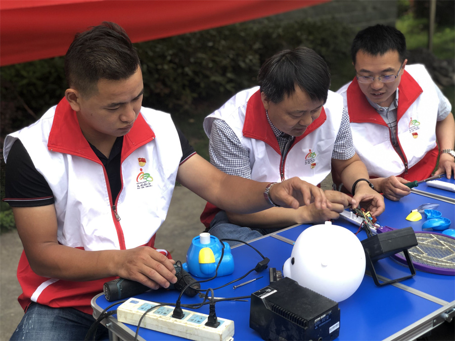 党员们一早就来到东城水岸小区的广场,布置好场地,迎接居民的到来。服务现场,电饭煲、电风扇、取暖器、电饼档、足浴盆、台灯、电动玩具、电水壶、电蚊拍、收音机等等琳琅满目,种类繁多。经过志愿者们的细心检修,居民们纷纷满意而归。社区同志和居民对技师学院党员们的维修技能和服务热情赞不绝口,并期待党员们能常来社区开展这类便民服务。