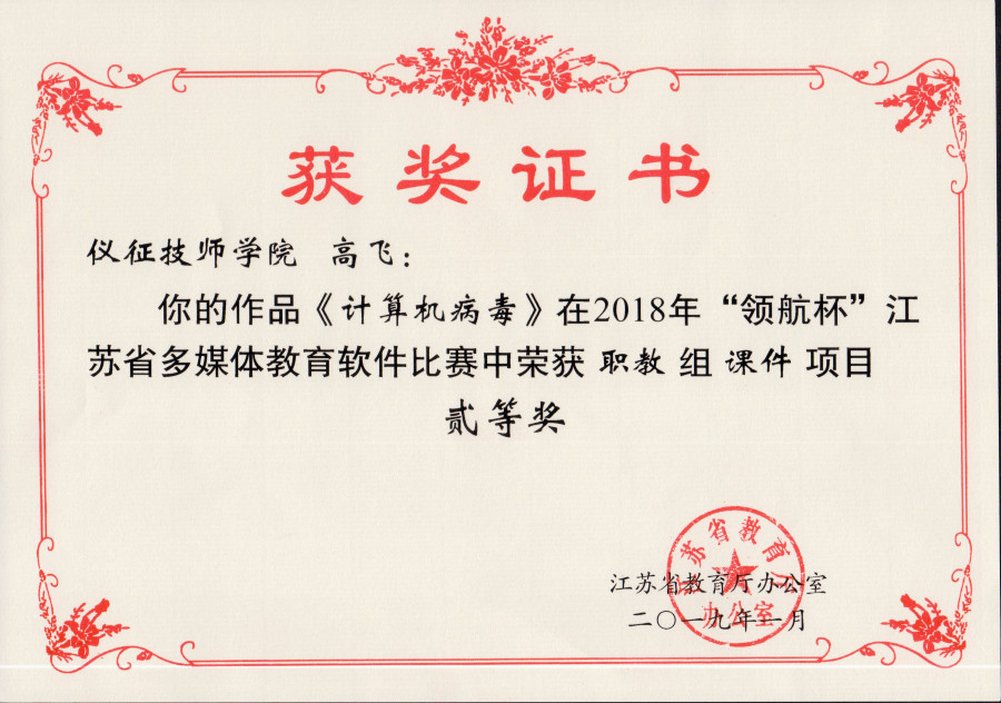 近日,江苏省“领航杯”多媒体教育软件大赛结果揭晓,我院参赛选手高飞、陈波荣获中等职业教育组课件、微课类项目二等奖!
