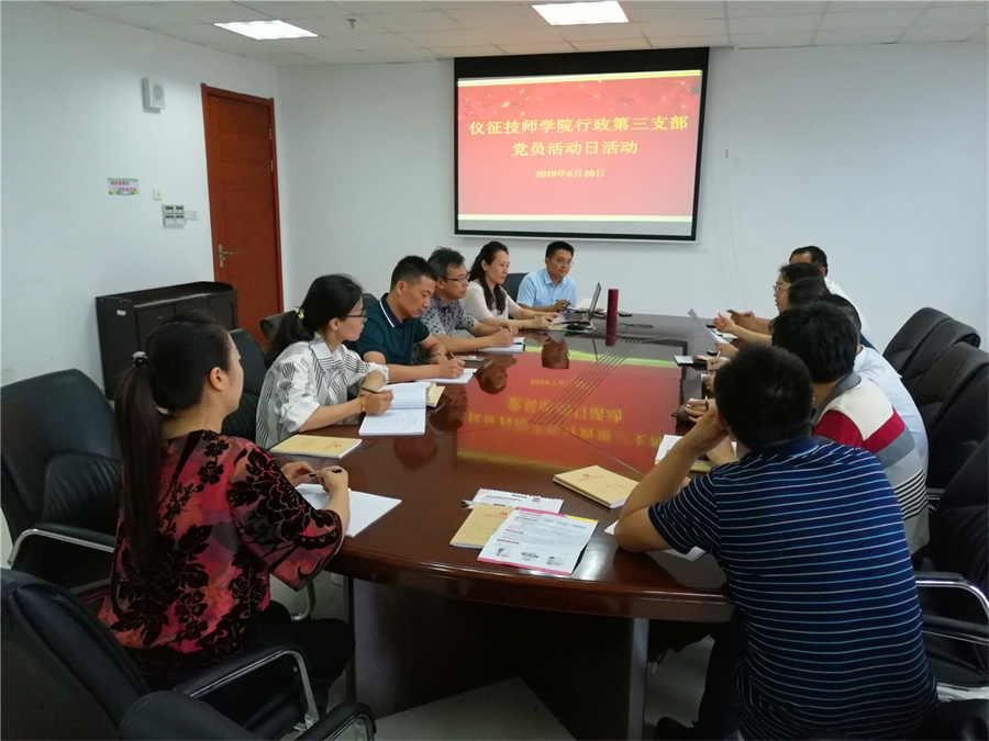 6月20日下午3:30,我院行政第三党支部在图文信息楼7楼东会议室开展六月份“党员活动日”活动,三支部全体党员参加本次会议。