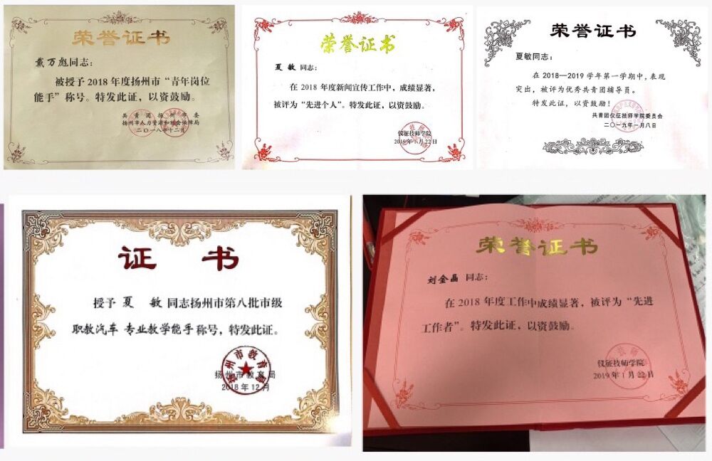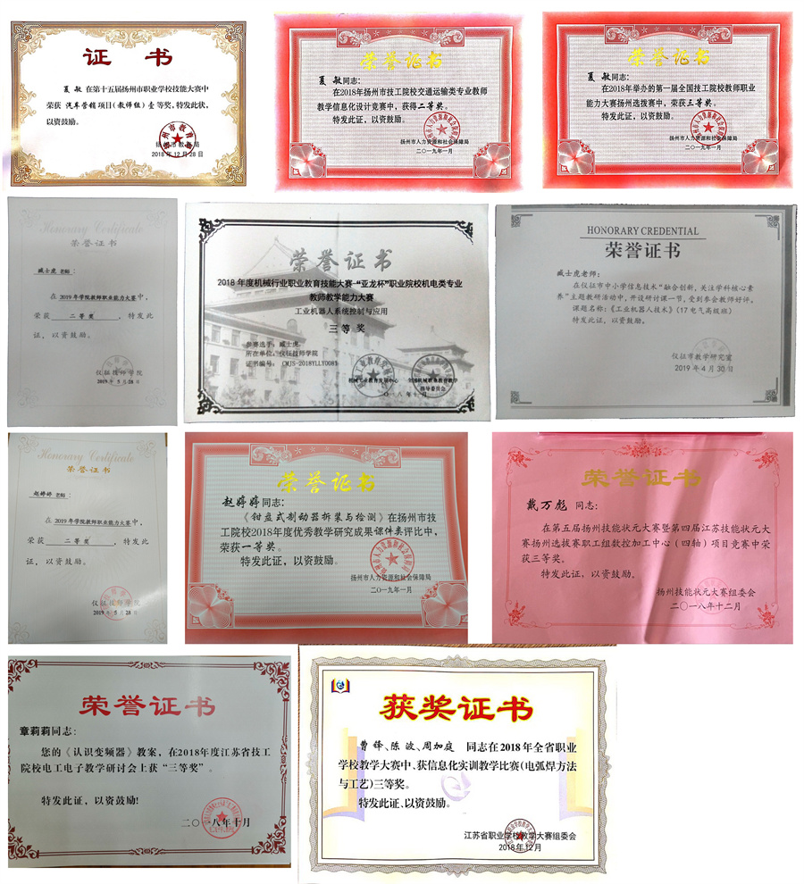一年来,青年教师在教学方面得到了磨炼、提升,促进了青年教师的教育教学水平提高。戴万彪老师被扬州人社局授予“青年岗位能手”、“扬州市技术能手”荣誉称号,戴治敏、夏敏2位老师被扬州教育局授予“专业教学能手”荣誉称号,另有6人次受到学院表彰。臧士虎老师参加2018年度机械行业职业教育技能大赛获三等奖,曹锋老师参加省教学大赛获三等奖,夏敏、戴万彪、戴治敏、章莉莉、赵婷婷等老师在扬州市级教学大赛、教科研成果评比中获奖。夏敏、叶子寒、王蕾等老师指导的学生在省市技能大赛中获奖,邱灏、臧士虎、夏敏、赵婷婷、戴治敏、刘金晶、叶子寒等老师在院级各类比赛中获奖。