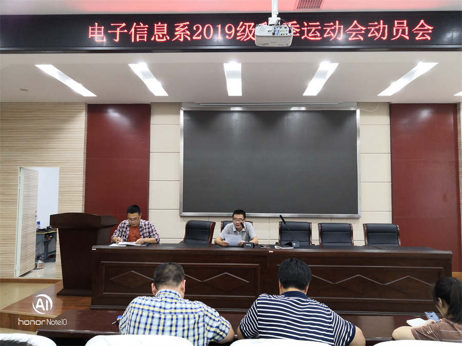 在秋季运动会即将到来之际,为充分调动我系学生的积极性,同时保障训练期间各项服务工作有序进行。2019年9月5日,电子信息系在B208多功能报告厅召开2019年秋季院运动会动员大会,孙毅副主任、万文兵科长、各班主任及部分学生代表参加了此次动员大会。