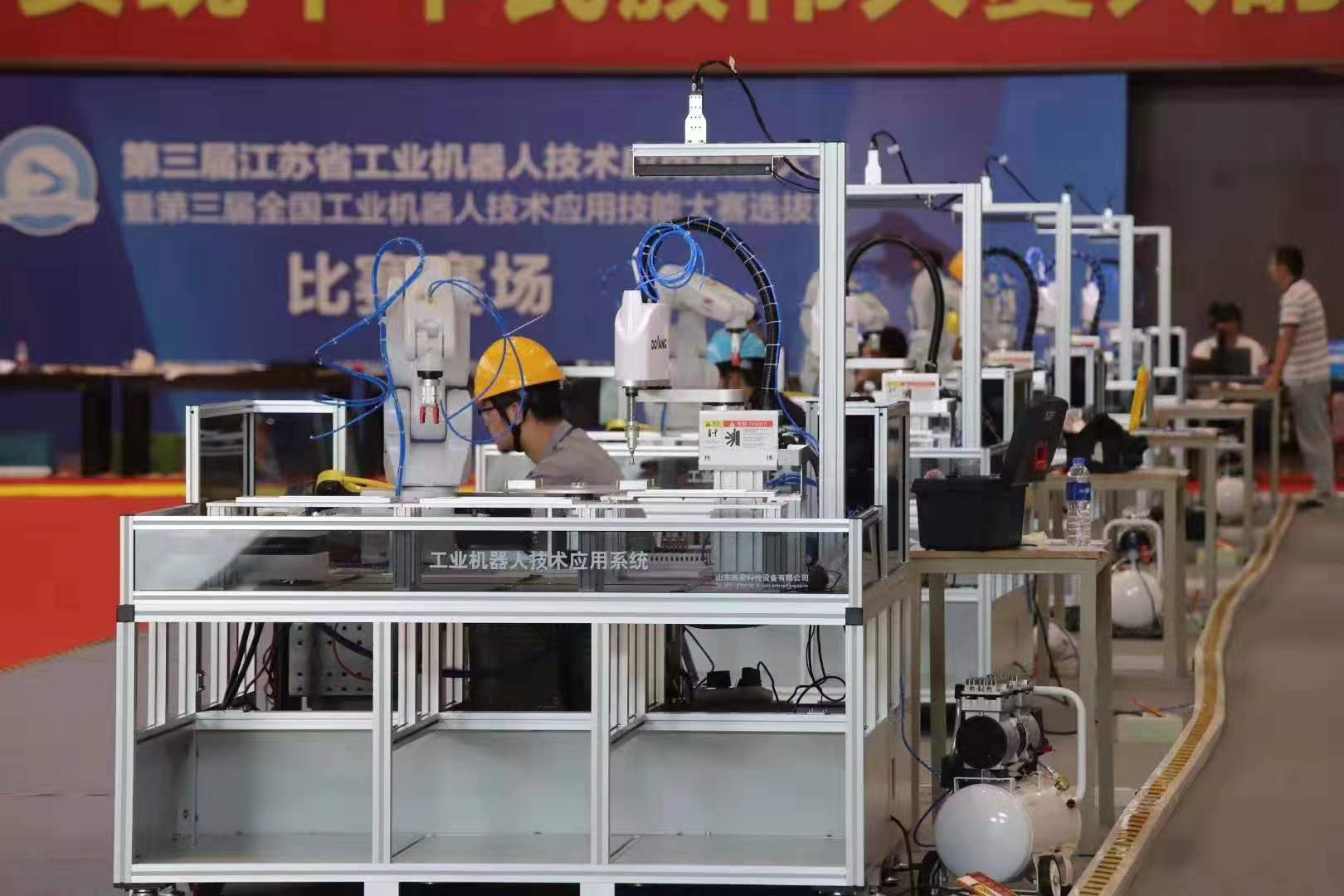 大赛内容分为理论考试和实际操作,重点考察选手设计、安装、调试和操控工业机器人完成指定任务的理论知识和技术水平,其中理论占总成绩的20%,实际操作占80%。大赛分为职工组、教师组和学生组,为单人赛,所有选手首先参加理论考试,实际操作比赛由各组别前30名 选手参加。
