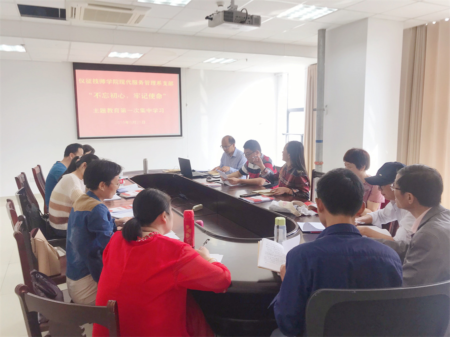 9月25日上午,现代服务管理系党支部在图文信息楼五楼东会议室召开 “不忘初心,牢记使命”主题教育学习会。会议由党支部书记戴红梅同志主持,系全体党员出席会议。
