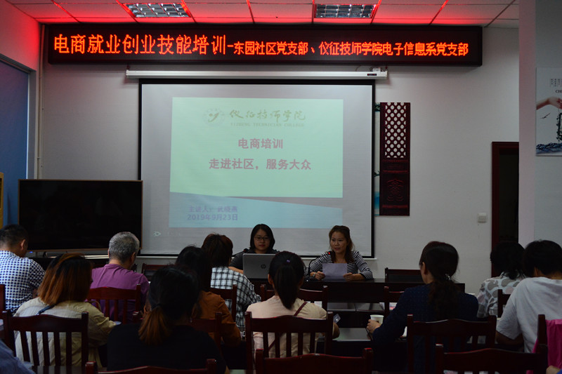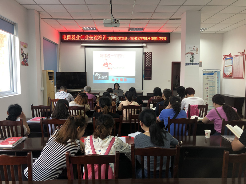 为帮助东园社区内的下岗职工、待就业青年、无业宝妈拓宽再就业渠道,把握互联网创业平台,养成电商基本素养。2019年9月23日下午,电子信息系党支部联合东园社区党支部开展了电商培训进社区活动,为社区内20多位无业居民提供了电商就业创业技能培训服务,培训由电子信息系副主任武晓燕同志主讲。
