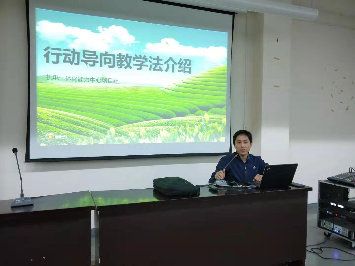 秋日的风景层林尽染,学习的道路永无止境。为进一步强化师资队伍建设,提高教师专业素养,接收最新教学理念,11月1日下午机电工程系在C107举行了《行动导向教学法介绍》专题讲座,该讲座由陈隶源副主任主讲,系部全体教师参加了本次讲座。