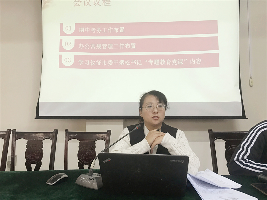 首先,教务科曹文文科长就前半学期的教务工作进行了总结,提出教师教案、教学督导等方面的问题,特别强调了下周期中考试考务工作的布置。接着,系潘健主任助理对办公常规管理工作布置作出要求,明确指出办公室的用电安全问题,避免大功率电器的使用。