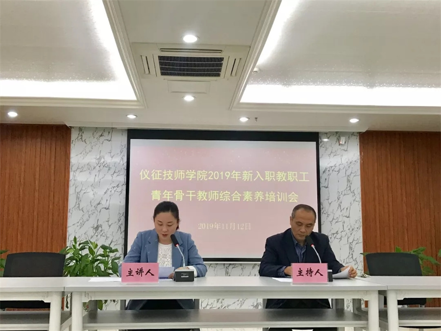 为了提升学院教师思想政治素养和职业道德素养,加强教师队伍建设, 11月12日上午,仪征技师学院在图文信息楼9楼电教室,召开2019年新入职教职工、青年骨干教师综合素养培训会,2019年新入职教职工、学院青年骨干教师培训班全体学员参加学习,会议由姜同林副主任主持。