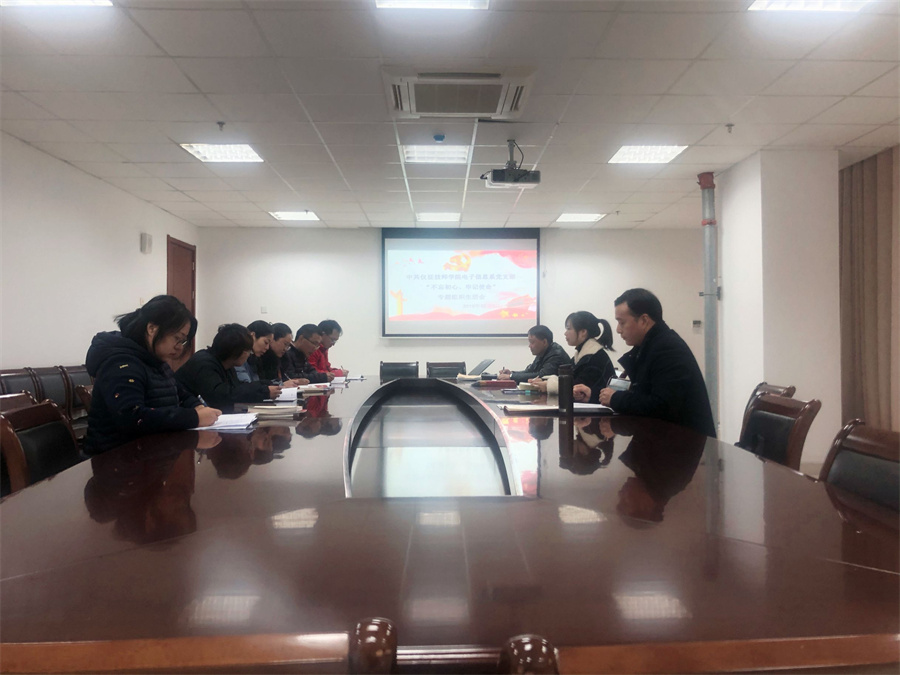 12月5日下午,按院党委部署,电子信息系党支部在图文信息楼六楼东会议室组织召开“不忘初心、牢记使命”主题教育专题组织生活会,支部全体党员参加会议,会议由宰倩倩书记主持。
