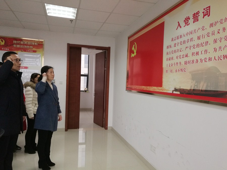 会上,马勇同志、许晓蓓同志分别围绕《习近平新时代中国特色社会主义思想学习纲要》之十三——建设美丽中国,《习近平关于“不忘初心、牢记使命”论述摘编》之九——加强学习,深入开展调查研究,全面增强执政本领的内容,对全体党员进行理论学习辅导。接着,举行曹国锋同志的入党宣誓仪式。在王莉主任宣读了仪征技师学院党委关于接收曹国锋同志为中共党员的批复后,全体党员起立,聆听庄严的《国际歌》。面对鲜红的党旗,王主任带领曹国锋同志庄严宣誓。随后,曹国锋同志作了表态性发言,他表示在今后的工作中,将牢记党员身份,脚踏实地,用实际行动践行铮铮誓言。陈修勇书记对新党员的加入表示热烈的欢迎和衷心的祝贺,并代表支部对曹国锋同志提出了三点希望:一是要谨记党员身份,展现党员先进性,发挥党员的模范带头作用;二是要坚持以身作则,严于律己,树立党员的良好形象;三是要坚定理想信念,加强政治理论学习,认真钻研业务,再接再厉作出新业绩。