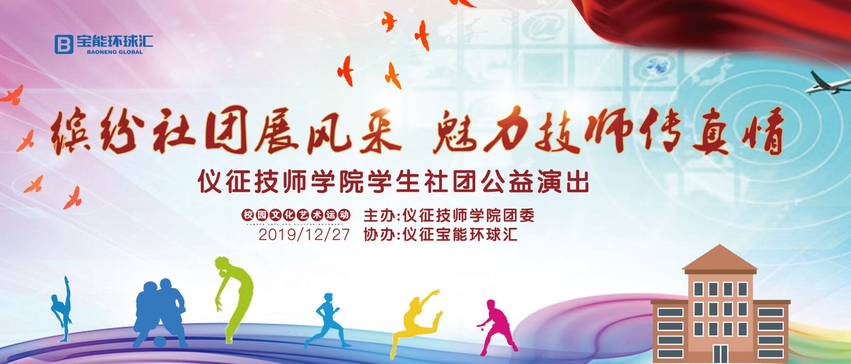 为了展示我院缤纷多彩的社团文化,充分发挥师生特长,展现技师风采。学院团委联合仪征宝能环球汇于12月27日晚在仪征宝能广场举办了“缤纷社团展风采 魅力技师传真情”为主题的社团公益演出。