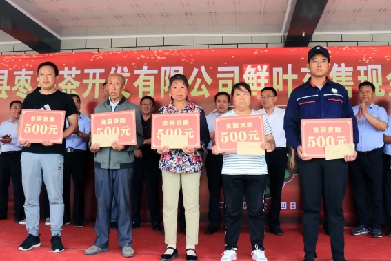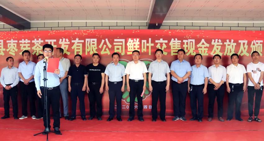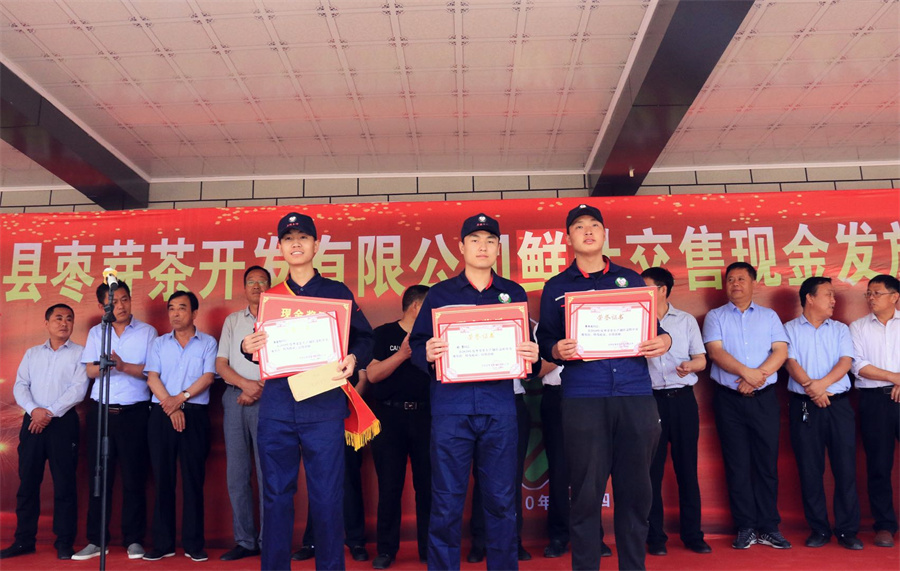 6月4日,吴堡县2020年度枣芽茶鲜叶交售现金发放及颁奖仪式在吴堡县枣芽茶开发有限公司举行。县委常委、政府常务副县长曹龙,县委常委、副县长、仪征市派驻吴堡县联络组组长孙卫中,副县长刘斌出席仪式。在仪式上,枣芽茶厂为江苏省仪征技师学院薛振龙等3名优秀实习大学生颁发奖金。
