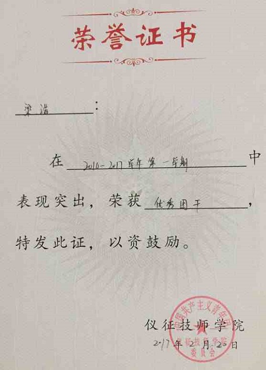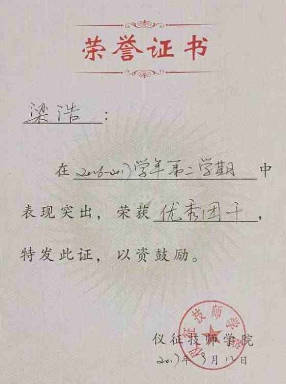 因梦想而探寻,因行动而成长——电子信息系优秀学生16汽车电子高级班梁浩