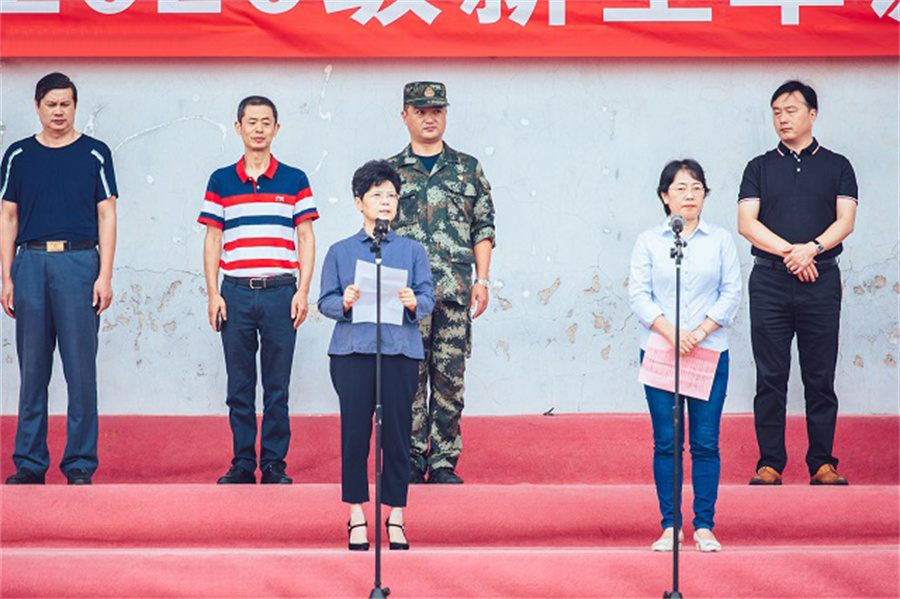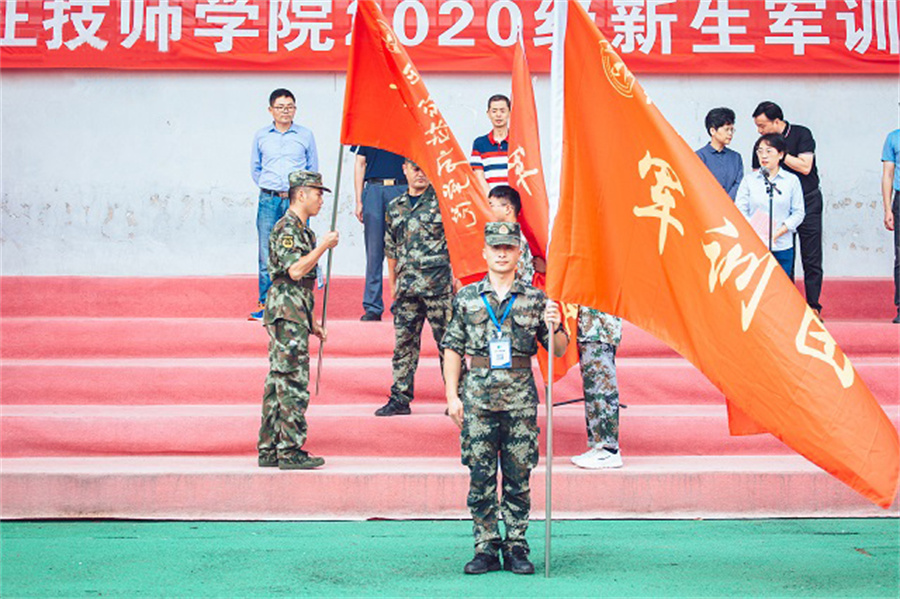 大会由夏桂荣处长主持,她首先介绍了参加今天活动的嘉宾和领导。庄严的升旗仪式后,基础部20级单招艺术班孙雨同学代表全体新生作了表态发言,电子信息系曹德臣老师作为新生班主任代表发言,教官代表王萌萌同志也作了表态发言。接着,周志红副院长发表了热情洋溢的讲话,她代表全院师生员工对新生们的到来表示热烈的欢迎,向新生们介绍了我院的基本情况和良好的发展前景。她指出,同学们来到技师学院就读,翻开了人生的新篇章,是同学们人生道路上的一个新起点。在新的环境中,同学们要积极调整心态,尽快完成角色转变,以饱满的精神状态迎接新的生活。她要求同学们在军训中严格按照教官的指令刻苦训练,锤炼意志品质,增强团队合作意识,为今后的学习生活打下坚实的基础。在主持人宣布军训团建制后,周志红副院长向新生军训团授团旗;随后,教官向各连队授连旗。最后,周志红副院长宣布仪征技师学院2020 级新生军训正式开始!
