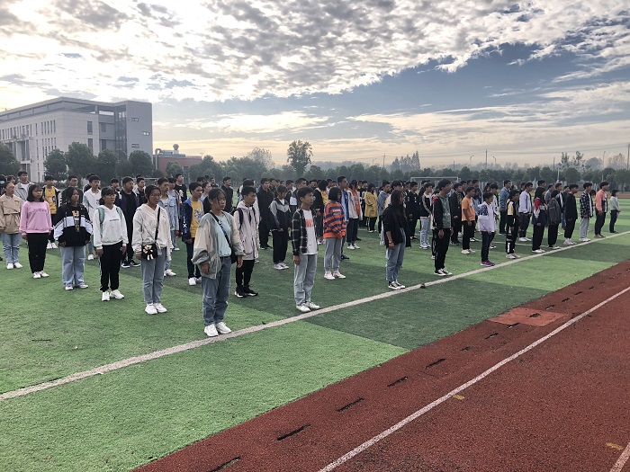 10月12日上午,我院电子信息系组织全系20级新生在院运动场举行升国旗仪式,升旗仪式由系团总支陈泽凯老师主持。