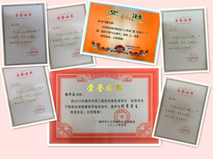我系18电气高级班徐开泰同学喜获国家奖学金。2018年9月进入仪征技师学院电气工程系以来,徐开泰同学始终以学业为重,无论何时,都将学习放在首位,他相信“书山有路勤为径,学海无涯苦作舟”。课堂上他认真听讲,课后及时巩固、复习,并利用课余时间拓宽自己的知识面,夯实专业基础。课余时间里,他还发展了一项新爱好:电脑插画。他爱学习,也享受学习的快乐,在学习的路上也收获了许多的荣誉。他被评选为扬州市优秀学生,多次被评为校“三好学生”,并在2018-2019第二学期通过了全国计算机等级考试一级考试,参加学校组织的听写大赛所在团体获得“二等奖”和“最佳选手奖”等荣誉。