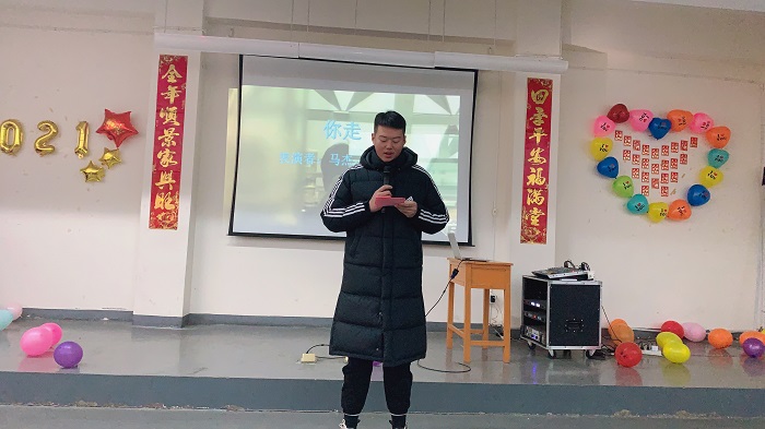 活动在主持人热情洋溢的报幕声中拉开序幕。系团总支魏海燕书记首先致欢迎辞,感谢系部领导和老师这一年来对系学生会工作的支持和帮助,欣喜学生会成员这一年的成长与收获。青春扬帆,载歌载舞。活动节目精彩纷呈,各有千秋。活动现场,气氛高涨,高潮迭起,大家的欢声笑语温暖整个教室,驱走雪后严寒。