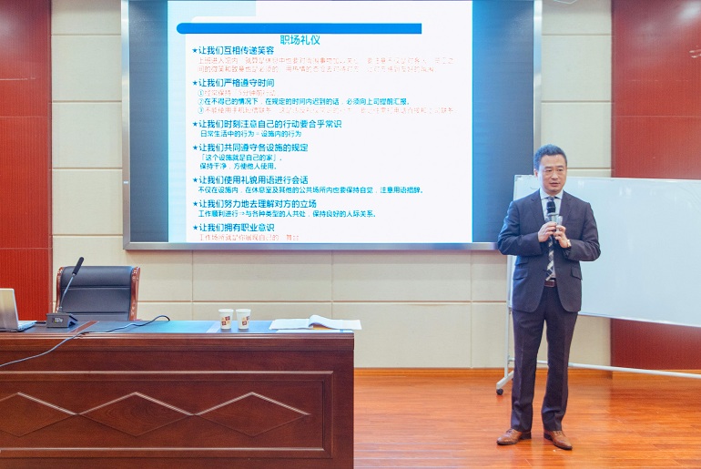 3月16日由中外礼仪终身学习及传播者、国内唯一历任多届国内外大型博览会特聘讲师孙邦文康先生进行了“角色认知”、“什么是服务”、“游客心理分析及应对”三个主题的讲座。孙邦文康先生独特的授课方式吸引了志愿者们的注意力,他在台上用一连串的动作,让同学们解说他表达的信息。同学们积极参与到老师的提问中,表达自己的想法。孙邦先生通过这个小互动告诉大家,交流不只是语言,肢体也能表达不同的信息。在志愿服务中,良好的接待姿势,会让游客们有着不一样的感触。为了让志愿者们加深体会,孙邦先生还邀请同学们走上台,用情境再现的方式,教授大家在志愿活动中如何应对突发情况的处理方法,充分调动了课堂的气氛。整个培训过程内容充实,生动有趣。