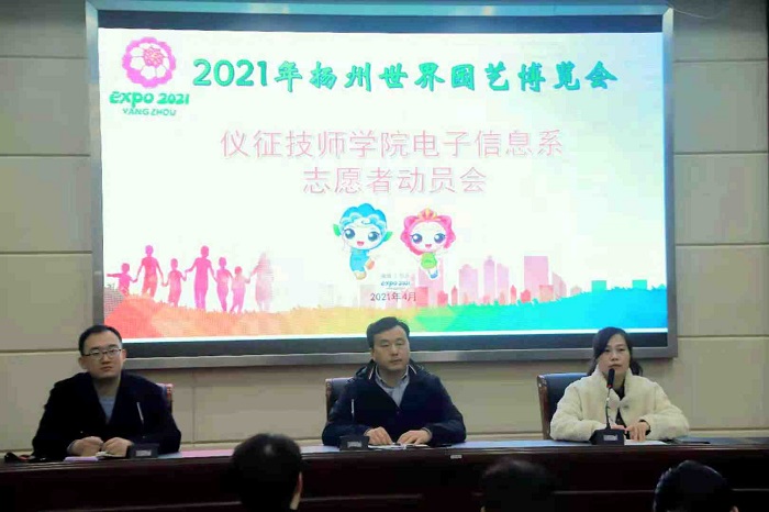 2021年扬州世界园艺博览会志愿者动员会。动员会由电子信息系团总支