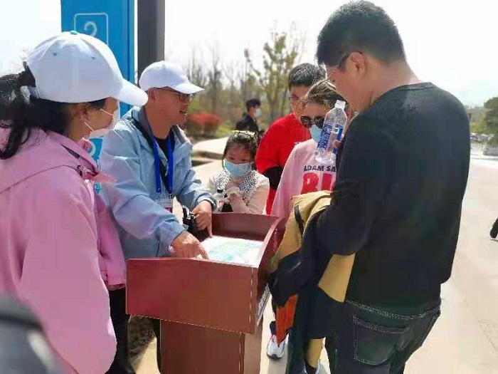 开园前,骨干志愿者们坚持熟悉园内环境,每天都要在园里行走数十里,了解每条路径,每个景点、医疗、厕所、公交的位置,有的同志把脚磨破了,有的把腰肌劳损跑犯了,疼得直咬牙,但没有同志抱怨,晚上回家继续对照游览图圈圈点点,找准具体位置,速记“百问手册”内容,力争让游客有求必应,有问必答。