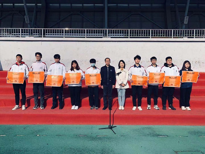 庄严、肃穆的升旗仪式之后大会正式举行。孙苏扬主任和赵娟书记分别宣读了《关于表彰2020-2021学年第一学期“先进团支部”、“优秀学生会干部”、“优秀学生会成员”、“优秀团干”、“优秀团员”的决定》、《关于表彰2020-2021学年第一学期“三好生”、“优秀学生干部”的决定》。随后,颁奖嘉宾们向受表彰的先进集体与个人颁发荣誉证书与奖品,同学们依次上台领奖。最后孙主任向参加表彰大会的所有同学们提出了殷切希望和要求,要求同学们立足新起点,启动新梦想,超越自我,再创佳绩!