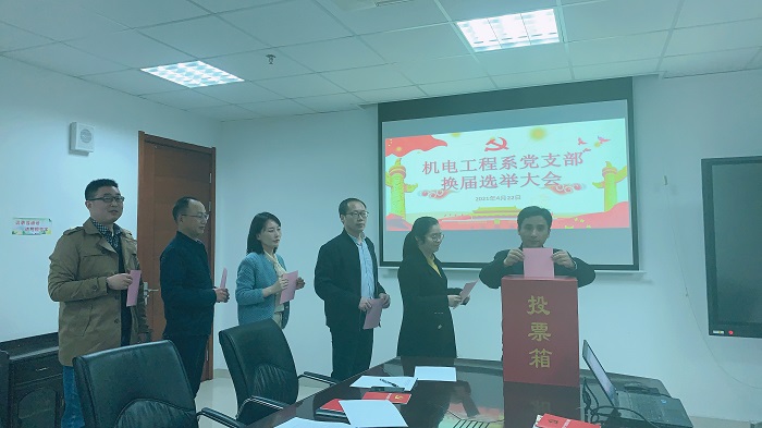 此次换届选举大会组织严密,程序规范,进展顺利。通过此次支部换届选举,机电工程系党支部进一步选优配强了支部班子,为支部党建工作的发展提供了坚强有力的组织保障。!