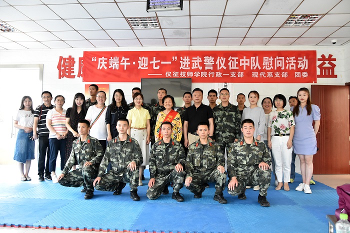 为贯彻落实“我为群众办实事”实践活动要求,在端午节即将到来之际,6月11日上午,来自技师学院行政一支部、现代服务系支部、团委的党团员志愿者和拥军模范周宏英、社区拥军服务队,走进武警仪征中队开展端午节慰问,与武警仪征中队的官兵们一起喜迎端午佳节。