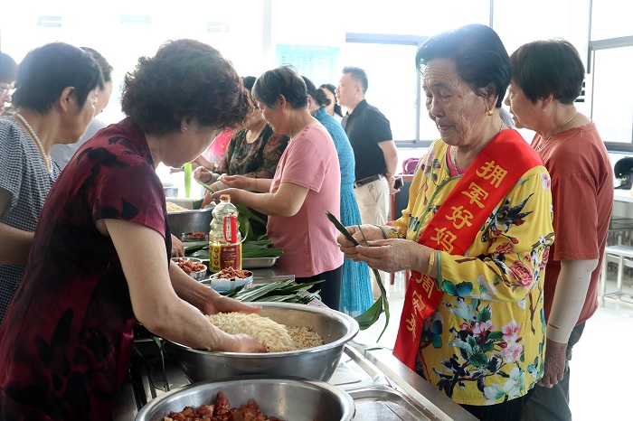 学院党员志愿者们参观营区,了解武警仪征中队官兵的日常生活,自带食材和远离家乡的武警官兵们一起包粽子,让武警官兵享受端午节浓浓的节日气氛。