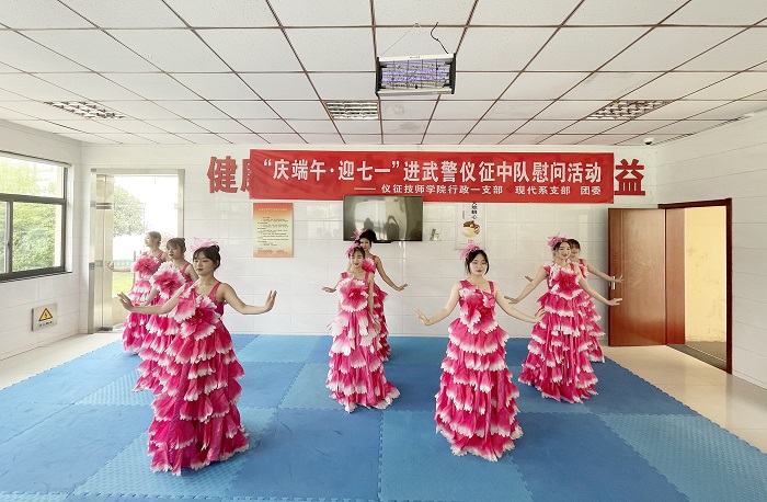 在慰问演出中,官兵们观看了现代系党支部舞蹈表演《不忘初心》和《灯火里的中国》,武警仪征中队战士带来小品表演《主角与配角》,志愿者与武警官兵同台演出,现场氛围融洽,体现了军民团结的深厚情谊。