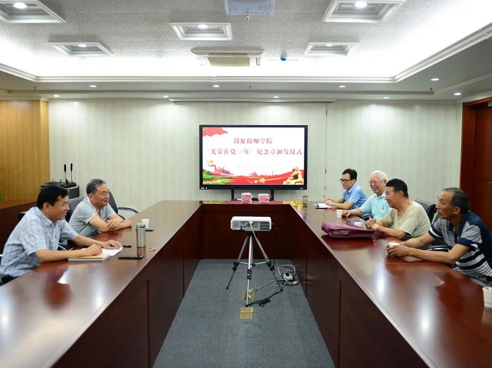 按照市委组织部要求, 6月24日下午,仪征技师学院在八楼会议室举行“光荣在党50年”纪念章颁发仪式。