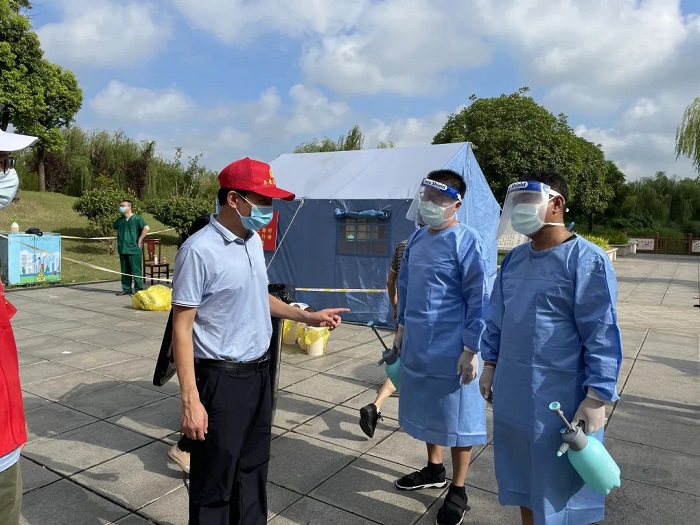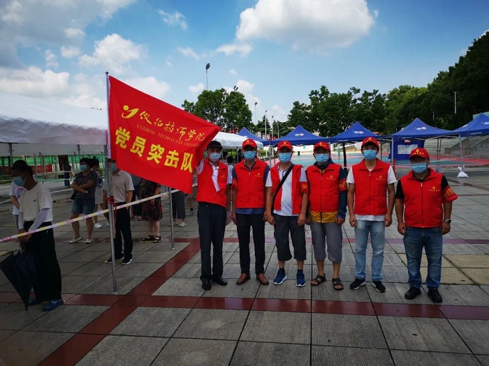 学院党委书记蒋朝明、院长王志强和相关院领导前往三将、东园、体育场核酸检测点,看望慰问学院奋战在一线的49名党员、教师志愿者。