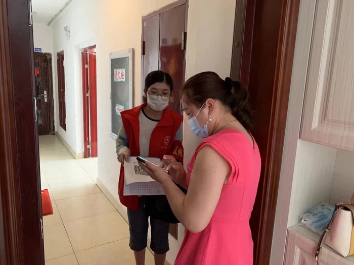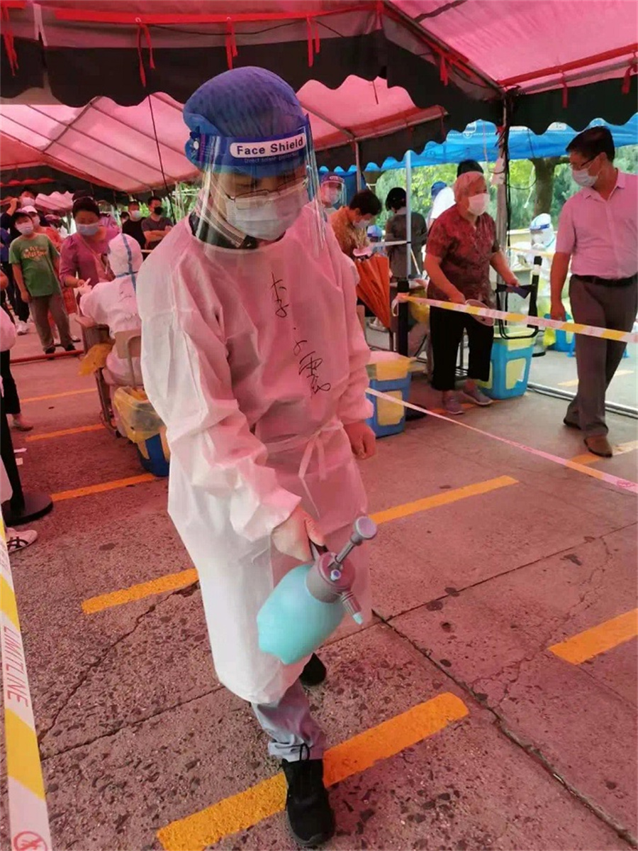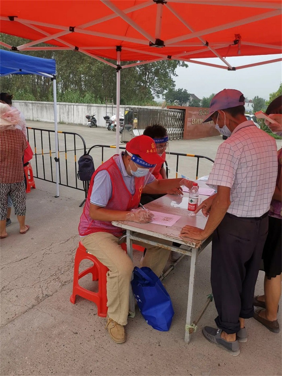 葛振娣:8月3日,我在全市做第一轮核酸检测时主动请缨参加“战斗”,在三将村核酸检测点,做好群众的心理疏导、体温检测等服务工作,和其他志愿者一样,烈日炎炎下无怨无悔。8月6日,又在三将村核酸检测点参加了全市第二轮核酸检测志愿服务。8月11日,我被安排至三将村进行逐户上门排查登记,最高楼层是17层,我不厌其烦地敲响每一户门,确保做到不遗漏一人,碰到家里无人应答时,就留下纸条告知到门卫处登记,遇到有些老年人不会操作时就手把手教,听到有的业主不耐烦时,就耐心讲解。小区排查结束后,紧接着我又参加了三将村的岗点值班,8小时一岗,最早7:00上岗,最迟晚上11:00离岗。我们主要是对所有进入小区的居民查验身份、检查健康码和行程码以及测量体温一等工作。遇到冲岗的居民,我们都紧追不舍,碰到拒不配合的居民,耐心劝说,力求做到万无一失,不留死角。值班中,我还遇到一位独自在大马路上乱跑的小男孩,在多方打听咨询中,最后顺利地将小男孩交到了亲人的手中,真是有惊无险。