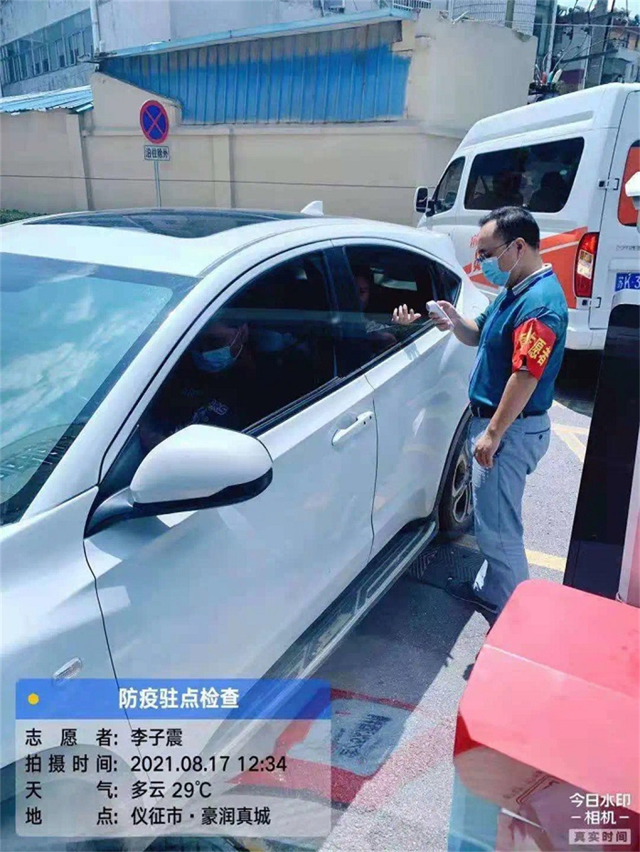 李子震:在此次疫情防控中,积极响应学院号召,我主动报名参加学院志愿者队伍。8月5日接到通知进入勤丰社区,我和同事们一起,承担勤丰社区华奥核酸检测点的现场消杀工作,8月6日,在仪征市第二轮全员核酸检测现场,顶高温,冒酷暑,严格按照操作流程,汗流浃背从不言累,确保现场消杀工作有序进行。8月10日开始,又和刘正东老师一起,负责真州西路70号中国银行宿舍区的卡点防控执勤和入户信息搜集工作,连日来,与中行相关工作人员一起建立了疫情核查安全通道,逐一走访、核对登记进出人员信息,确保该小区疫情防控相关工作全覆盖、零死角。在圆满完成中行宿舍卡点的各项任务后,8月17日开始,按照社区和片区要求,再次转战豪润真城小区,参加该卡点的驻守执勤工作。