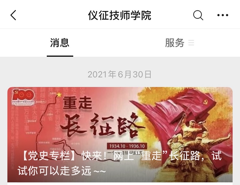 技师学院将《中华人民共和国简史》《改革开放简史》《社会主义发展简史》作为师生思想政治教育教材。同时在官网、官微开设“党史专栏”,采用“互联网+教育”方式,向学生推送“献礼建党百年红剧”“10部必看经典红色电影”“网上‘重走长征路’”等学习内容,做活自选动作,营造学习宣传党史的浓厚氛围,坚定青少年跟党走的决心。学院连续22年被表彰为“扬州市文明单位(校园)”。