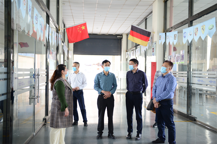 殷市长实地察看了学院门卫、食堂、实习车间等场所,了解门卫管理、人员排查、环境消杀、防疫物资、防控宣传等疫情防控措施的落实情况,对学院疫情防控工作给予了充分肯定。殷市长参观了学院国家级高技能人才实训基地,重点对工业机器人实训基地、中德新能源汽车能力中心、智能制造实训基地、光电技术项目中国集训基地、无人机应用及反制实训基地做了实地考察。