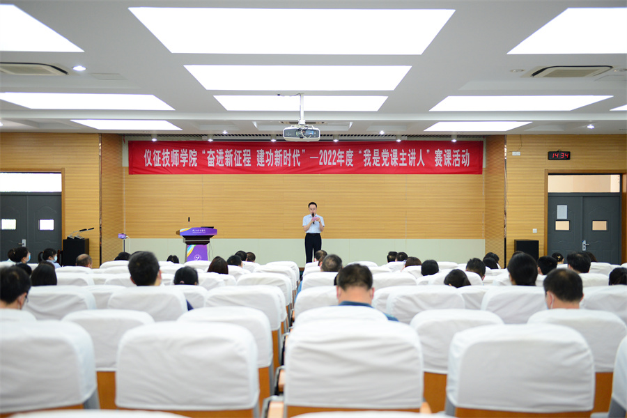 为深入学习贯彻习近平新时代中国特色社会主义思想,深化党员理想信念教育,按照市委宣传部、组织部通知要求,6月10日下午,仪征技师学院在C207报告厅举办“奋进新征程 建功新时代”——2022年度“我是党课主讲人” 赛课活动,学院领导班子、各支部书记、各部门负责人及中层干部代表、党员代表出席活动,各支部书记担任竞赛评委。本次活动采取现场观看和网络直播的形式开展。