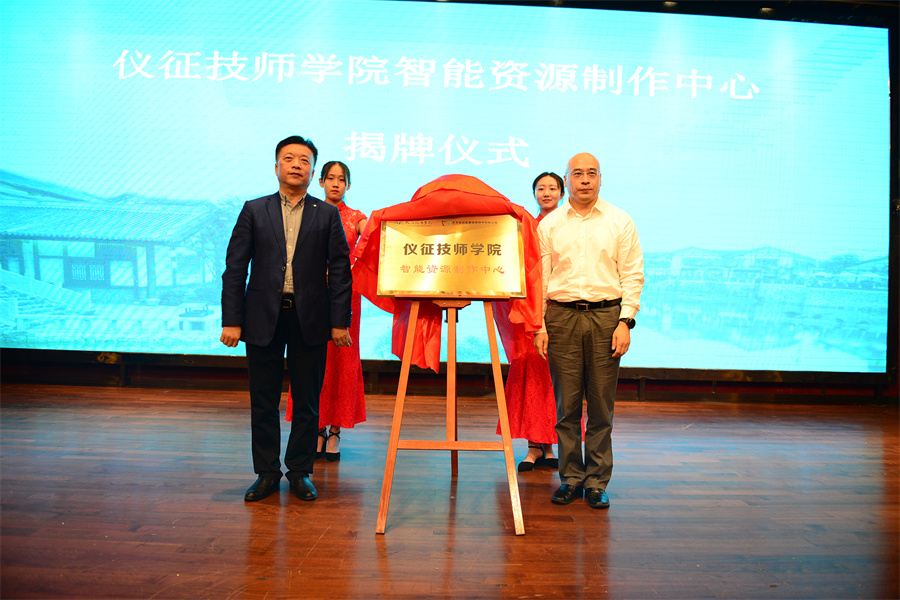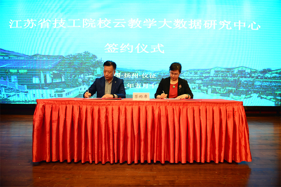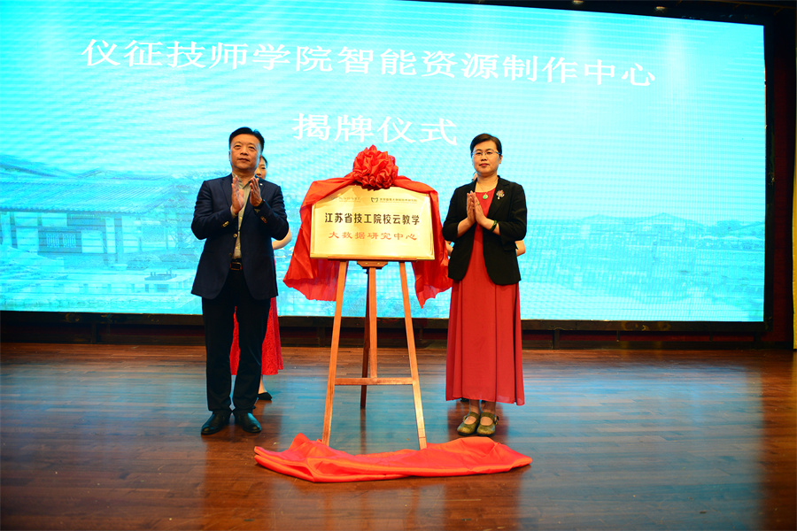 北京蓝墨大数据技术研究院商桑院长与仪征技师学院王志强院长签订《成立江苏省技工院校云教学大数据研究中心协议》并揭牌,北京智启蓝墨信息技术有限公司董事长靳新与仪征技师学院王志强院长为双方校企合作成立的仪征技师学院智能资源制作中心揭牌。北京蓝墨信息技术有限公司董事长靳新为仪征技师学院智能资源制作中心赠送10万元蓝墨智能化内容生态基金。