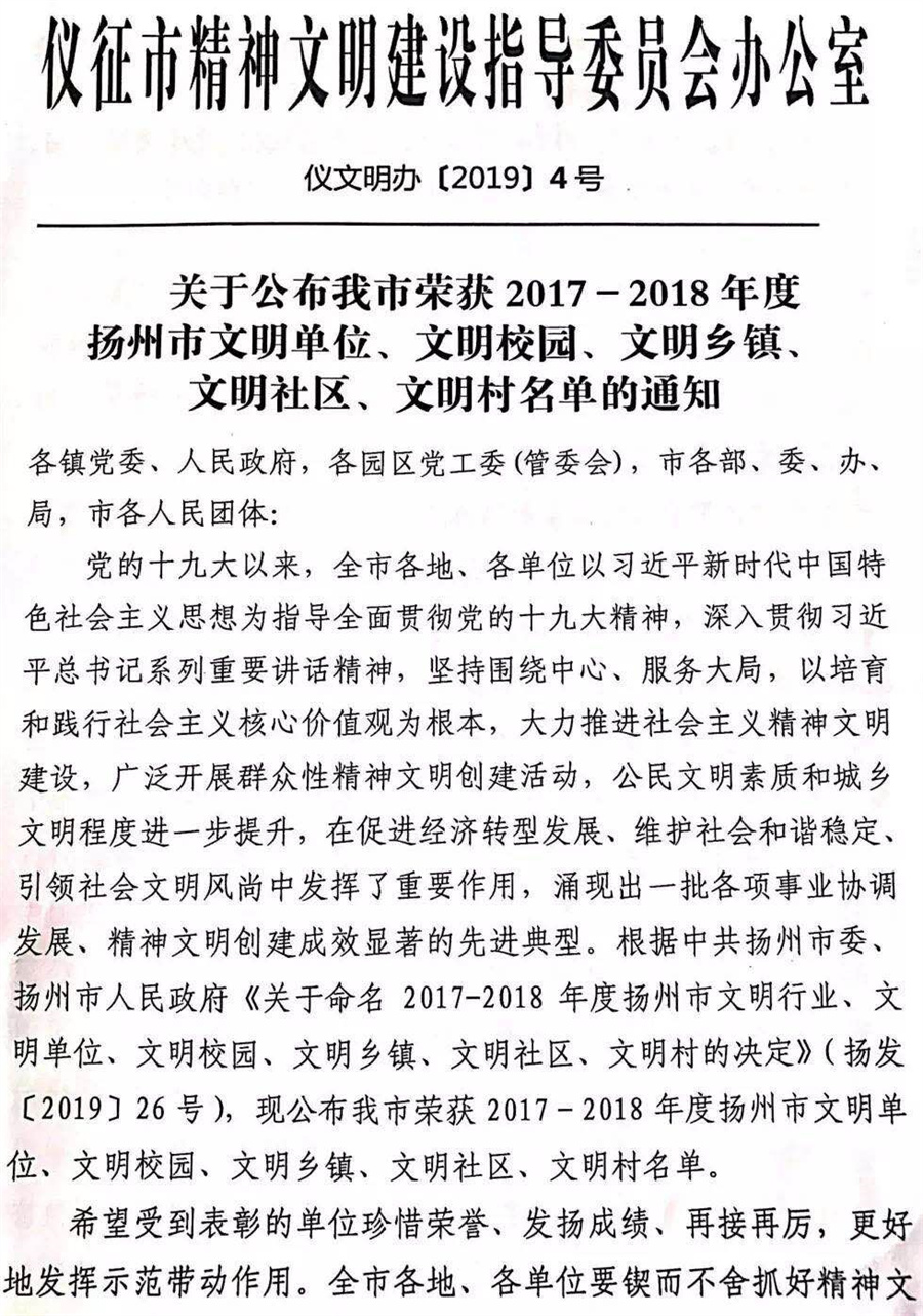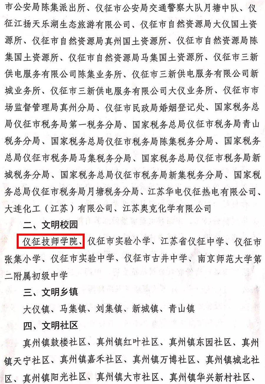 近日,仪征市精神文明建设指导委员会办公室下发了《关于公布我市2017—2018年度扬州市文明单位、文明校园、文明乡镇、文明社区、文明村名单的通知》,仪征技师学院名列其中,荣获“扬州市文明校园”称号,推动学院精神文明建设工作再上新台阶。