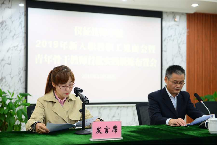 会上赵海燕主任宣读了《仪征技师学院2019年新入职教职工培养方案》、《仪征技师学院第一期青年骨干教师实践锻炼方案》;与会领导和教师观看仪征技师学院最新宣传片《技能报国 不负芳华》,深入地了解学院的办学理念、专业设置、人才培养模式、校园文化等,增强新入职教职工对学院认同感和归属感。