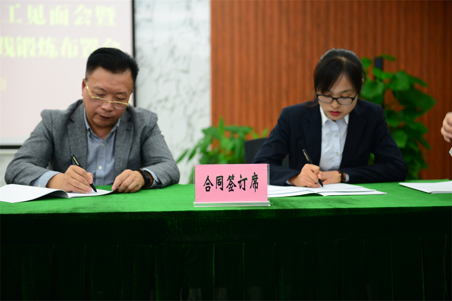 王志强院长代表学院与新入职教职工签订《江苏省事业单位聘用合同书》,对新入职教职工和青年教师提出要求和希望。