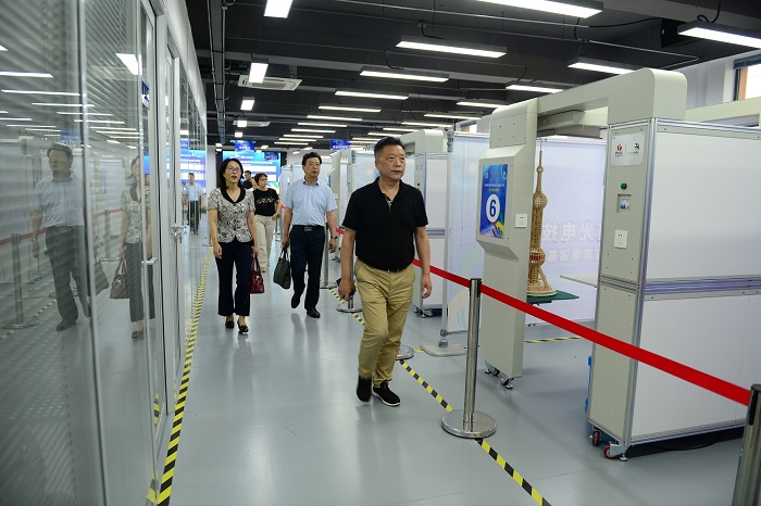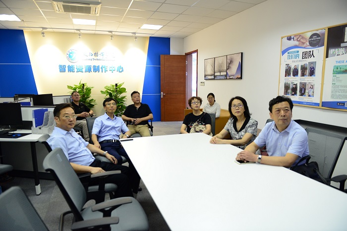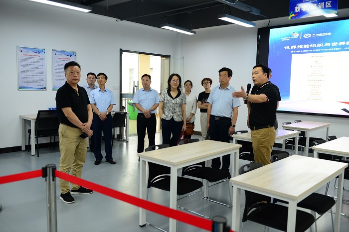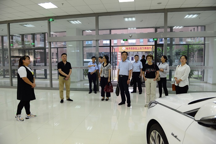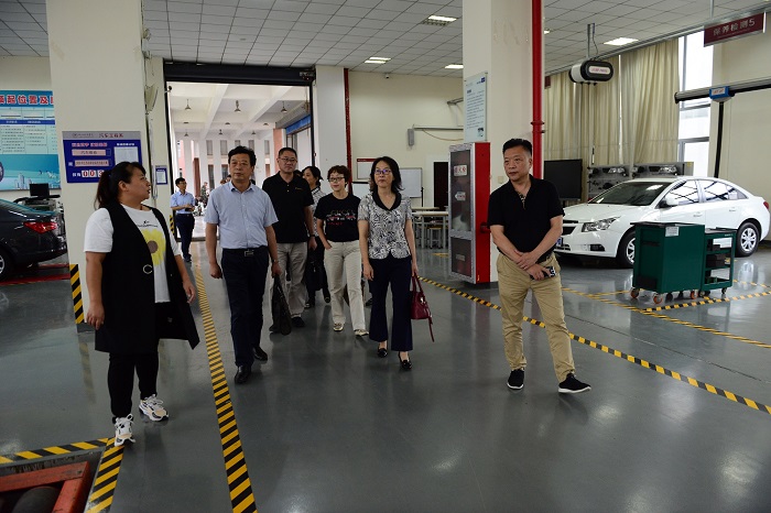 考察团参观了学院国家级高技能实训基地,重点对中德新能源汽车能力中心、光电技术项目省赛集训地、中德诺浩营销实训基地、以及设在我院的江苏省云教学大数据中心做了实地考察。