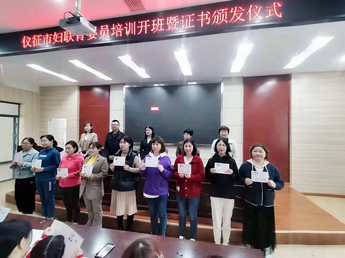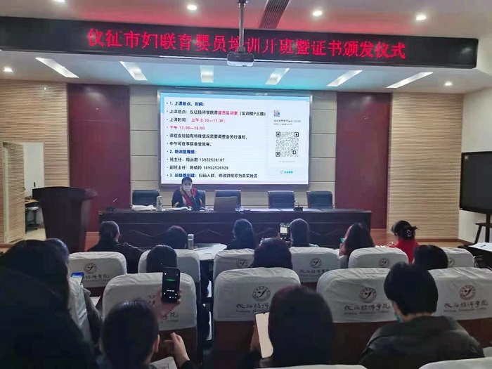 4月24日上午9点,仪征市妇联育婴员培训开班暨证书颁发仪式在仪征技师学院D208会议室举行。出席本次开班典礼的有仪征技师学院、市妇联、市财政局社会保障科、市人社局就业促进科的相关领导以及各镇、园区下岗失业待业妇女。