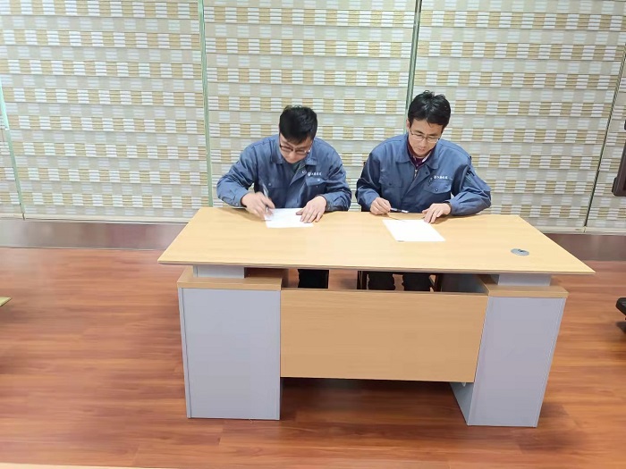 接着,企业导师和徒弟现场签约,车间殷一鸣主任为导师颁发聘书。企业导师代表严峻和学员代表王政分别发言。签约既是契约也是承诺,它代表着导师的责任和徒弟的义务。