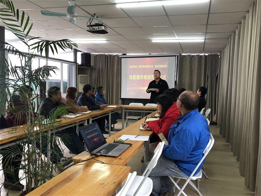 12月9日上午,由仪征技师学院承办的仪征山一防水布有限公司——技能提升培训开班仪式在山一防水布有限公司隆重举行。来自市人社局就业促进科督导员吴涛、技师学院电气工程系主任张友林、社会培训部部长朱波、山一防水布有限公司副总曹晓英、电气工程系孙燕研创小组团队以及全体培训人员参加了此次开班仪式。