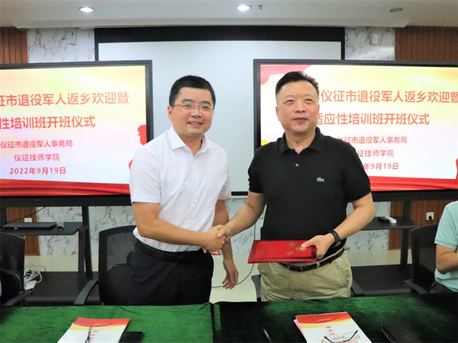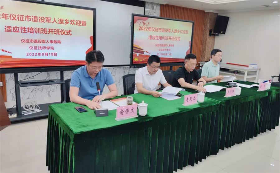 为深入贯彻全国退役军人工作会议精神,落实关于加强退役军人培训和就业创业帮扶工作的部署,9月19日下午,由仪征市退役军人事务局主办,仪征技师学院承办的仪征市2022年退役军人返乡欢迎暨适应性培训班,在仪征技师学院9楼电教室举行开班仪式。仪征市副市长李晟文、仪征技师学院院长王志强、仪征市退役军人事务局局长俞学文出席开班仪式并讲话。仪式由市外事办副主任蔡伟主持。