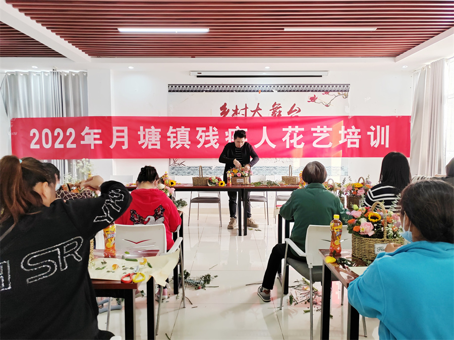 为进一步丰富仪征市残疾人的日常生活,激发他们对生活的热爱和对美的追求,仪征技师学院和仪征市残疾人联合会共同组织开展“花艺暖人心 . 技艺助就业”助力残疾人创业就业系列培训活动。11月10日下午,月塘镇花艺培训班开课,来自全镇各村的25名残疾学员参加了本次培训。