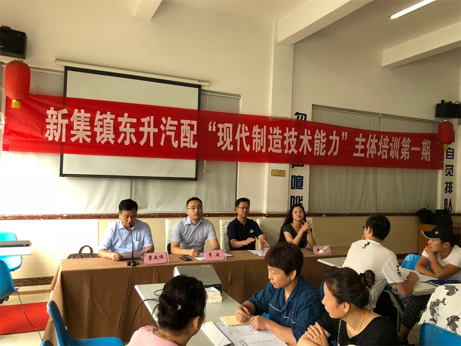 为了进一步服务地方企业发展,打造我院中小企业双创培训特色亮点,8月18日上午,在新集镇东升汽配公司内举行了“现代制造技术能力”主体培训班开班典礼,新集镇党委副书记李波出席并讲话,我院培训处处长陈福祥、东升汽配总经理助理杨蕾出席开班典礼,开班典礼由新集镇企管站站长裴武伟主持。