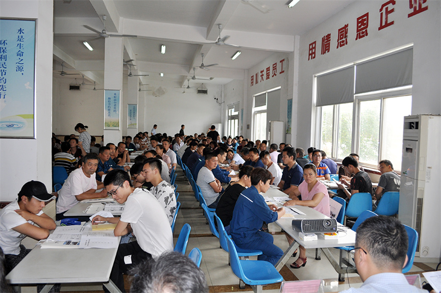 本次培训时间为20日-25日,共为东升汽配培训300多名员工,在这一过程中,我们对培训的方式进行了探索,实行线上和线下相结合的培训模式。在线下,专门安排《高绩效团队建设》和《打造现代制造型企业高效执行》等两个课题,组织员工集中学习、集中培训;在线上,安排老师到车间现场指导、现场教学,先后开展了《数控车工专题培训》、《数控铣工专项培训》、《数控机床装调与维修专题培训》、《械加工专题培训》、《焊工专题培训》等课题教学。可以说,这次的培训新模式是我院对双创培训思路模式的一次有益探索,创造性地将培训的课堂安排在车间,现场教学、现场交流,得到了扬州市双创中心领导以及企业负责人一致认可。