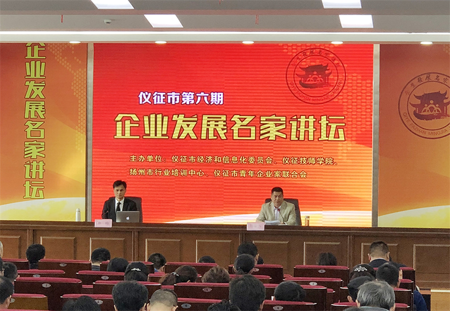 “仪征市企业发展名家讲坛“是仪征市经信委与仪征技师学院合作打造的品牌培训项目,旨在以名家成熟的管理理念,成功的发展经验,启发、引导中小微企业管理者转变思维方式,创新经营理念,引领企业健康、快速发展。目前,名家讲坛已经开讲六期。